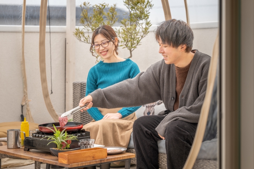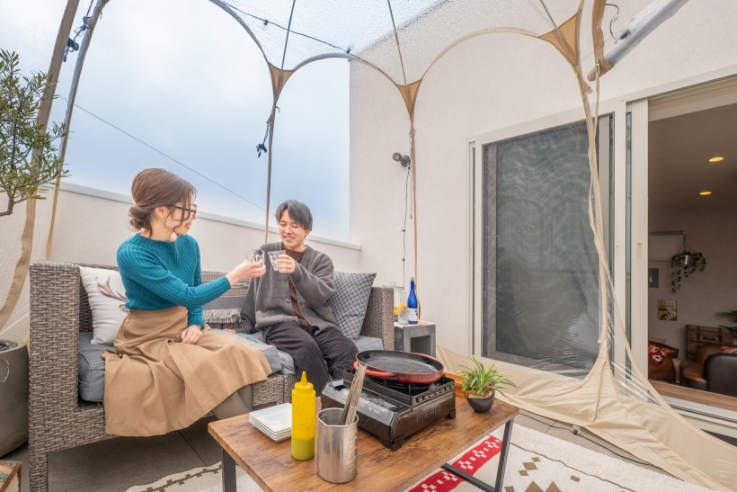 こんにちは! 今日も寒いですね.. 雪が降ると外へ出るのも億劫になってしまいますね.. 当店3Fの屋上庭園に設置してあるドームテントはそんな寒い日でも中は過ごしやすく、気軽に非日常空間を楽しめます。 気軽に体験できますので気になる方はご予約フォームからお問い合わせください。