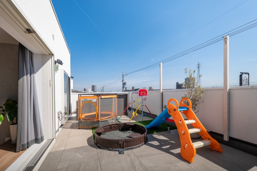 モデルハウスに新しいしつらえが加わりました。 今回は、屋上庭園に遊具を設置することで、家族で楽しむ空間を作りました。空の下のプライベートな公園。使い方無限大な屋上庭園の一つの形をぜひご体感ください!