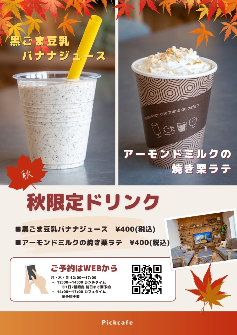 9月に入り、秋限定ドリンク販売しています。